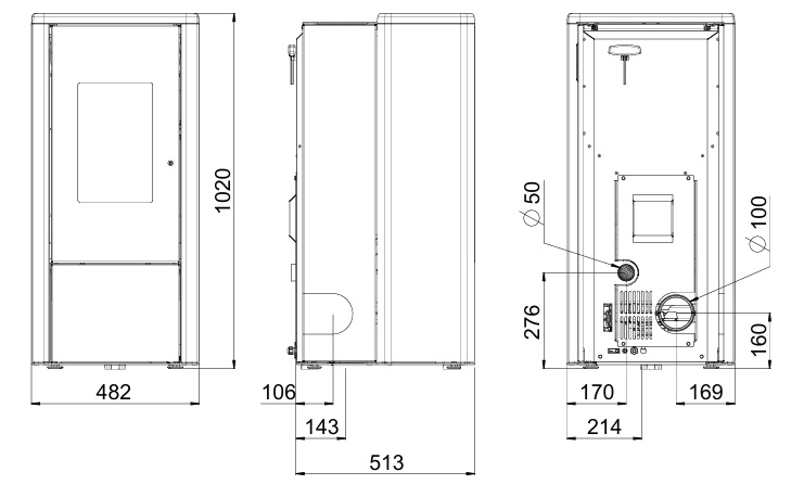 • Maße (H × B × T): 1.020 × 482 × 513 mm