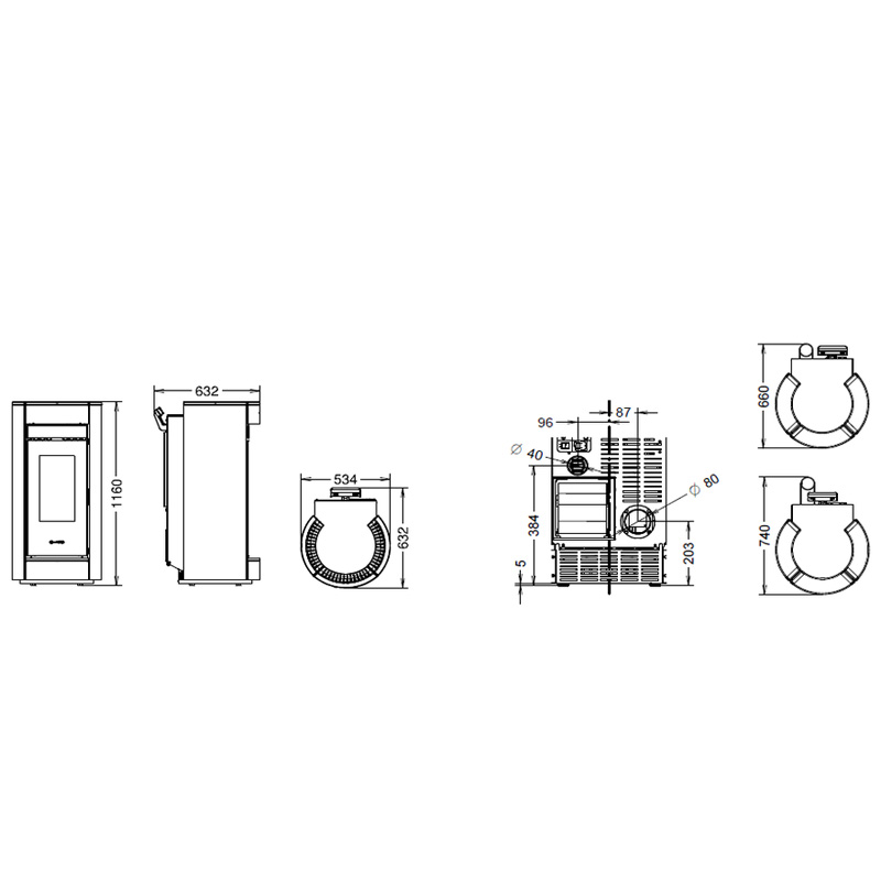 • Rauchrohranschluss: Ø 80 mm (oben / hinten / links)